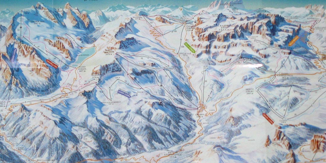 Sobald schönes Wetter ist, gleich als erstes auf die Marmolada. (nicht lange fackeln) Am Nachmittag in die Fedaiahütte, erst bei Dunkelheit mit Fackeln und Skier zurück ins Hotel. Besucht unbedingt das "Erste Weltkriegs-Museum" (Mittelstation, kein Eintritt).